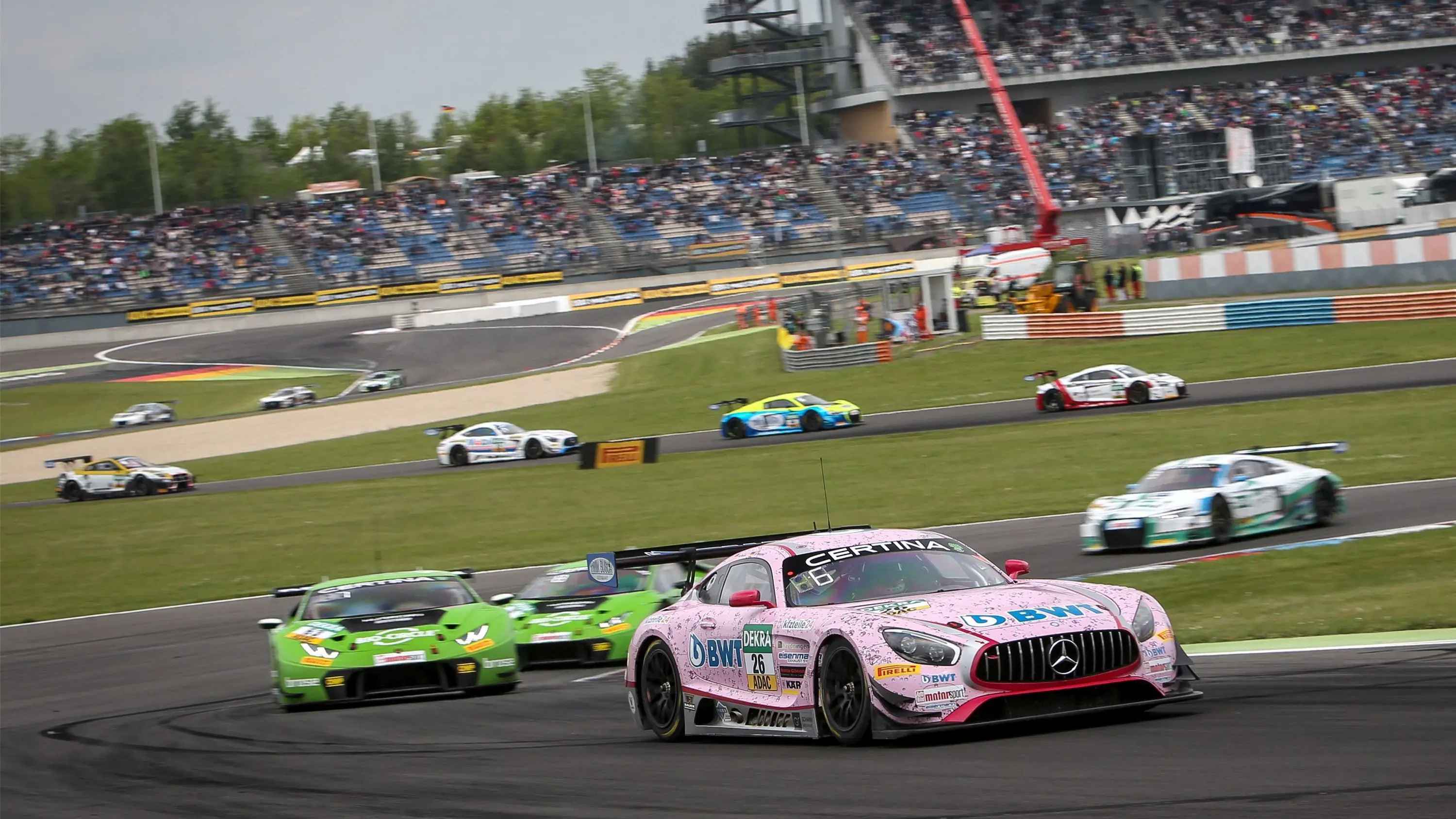 Hatte schwer zu kämpfen auf dem Lausitzrung: der rosa Mercedes-AMG GT3 mit Sebastian Asch und Stefan Mücke.