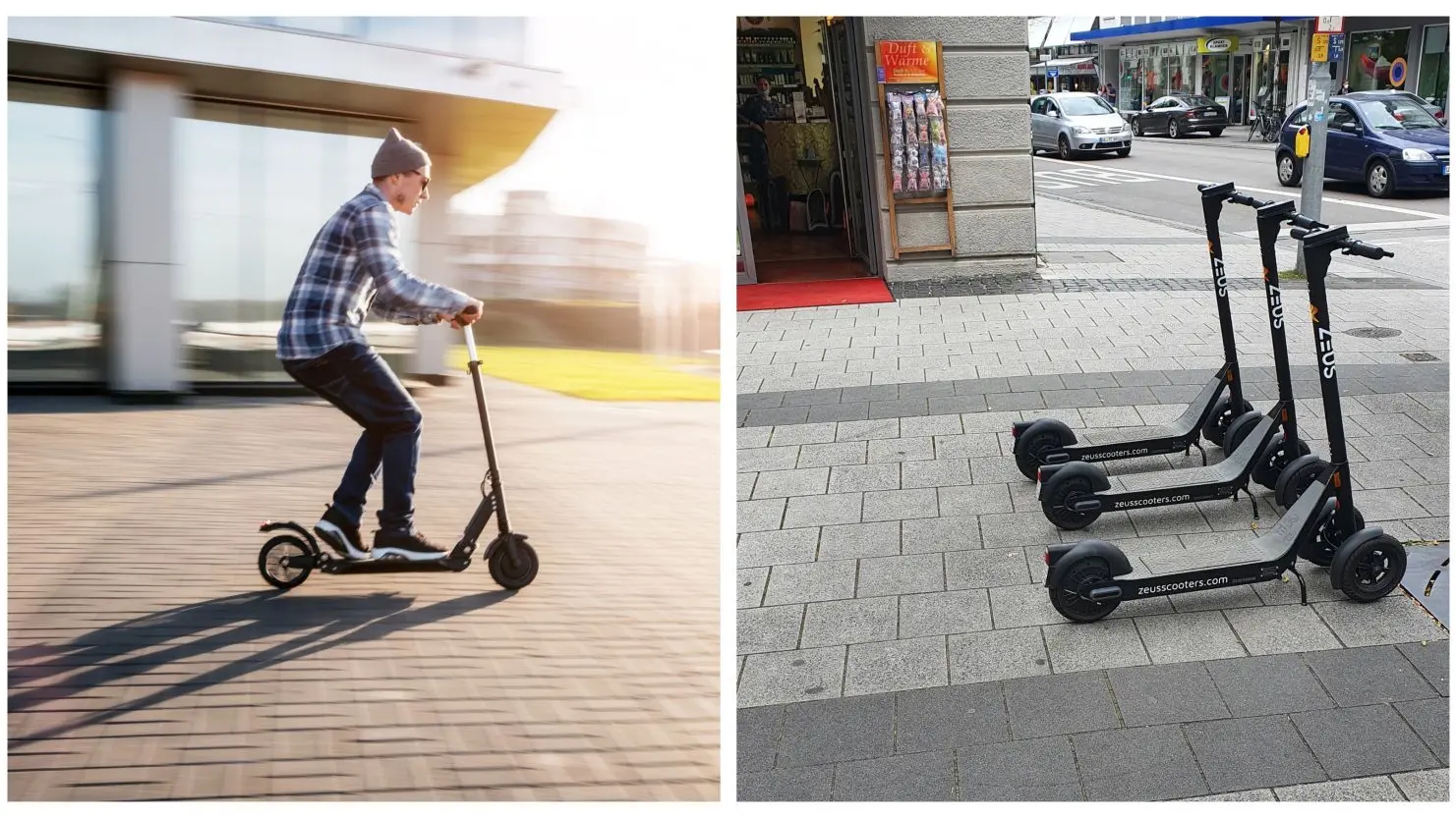 Ulm und Neu-Ulm werden E-Scooter-Städte (Symbolfoto, links). Bald können die Fahrzeuge der irischen Firma Zeus (rechts) ausgeliehen werden.