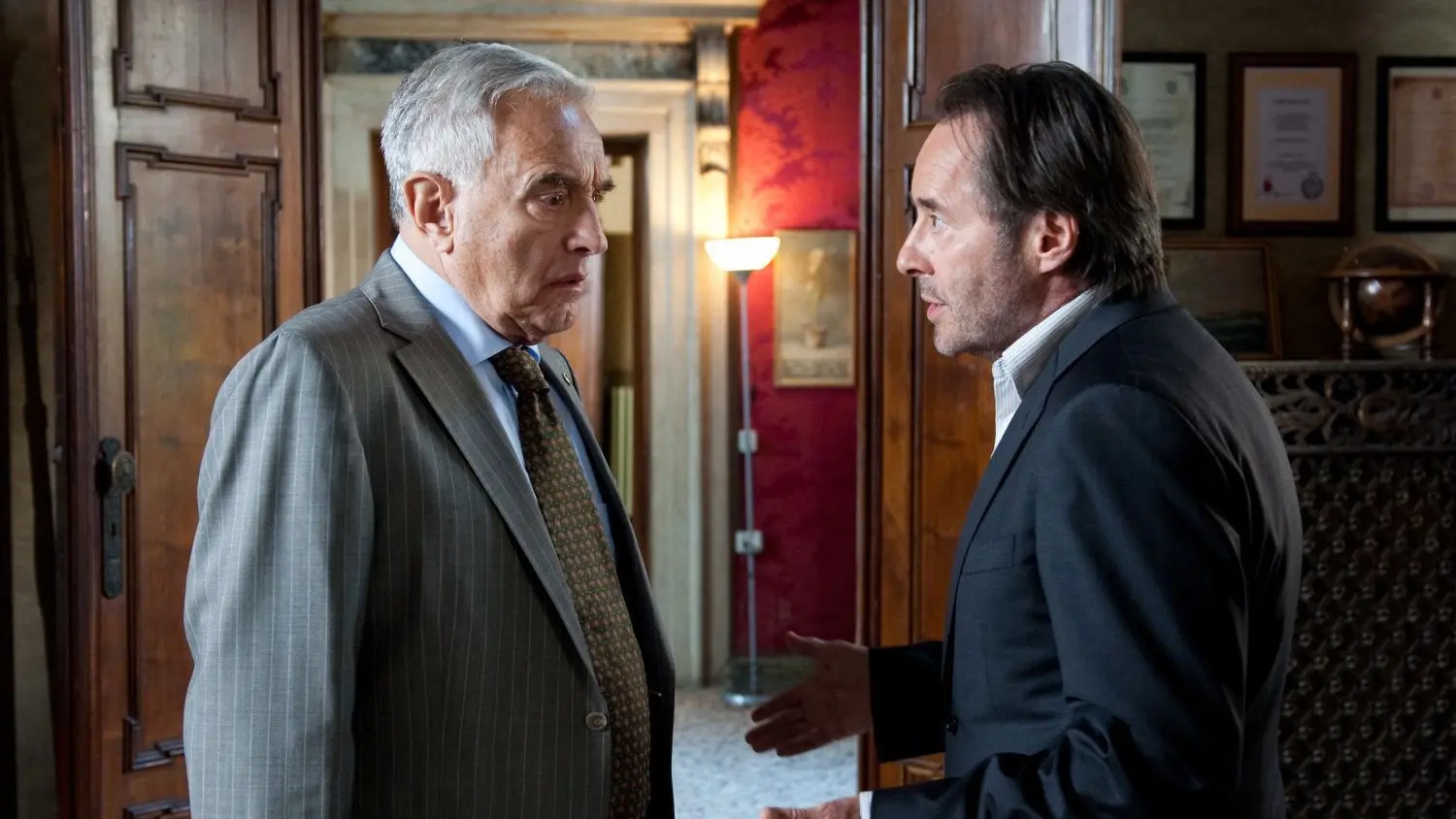 Michael Degen (links), hier als Vice-Questore Patta in einer Szene der ARD-Krimiserie „Donna Leon“, war zuletzt vor allem im Unterhaltungsfernsehen präsent. Doch seine Heimat war das Theater – in großen Rollen war er an ersten Häusern zu sehen.