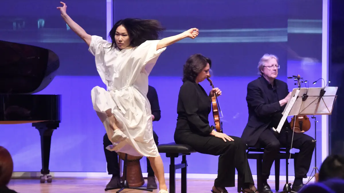 Die aus Japan stammende Tänzerin Ichi Go fühlt sich beim „KlangHaus“-Festival mit ihrer Bewegungskunst in die Grammatik des Wassers ein.
