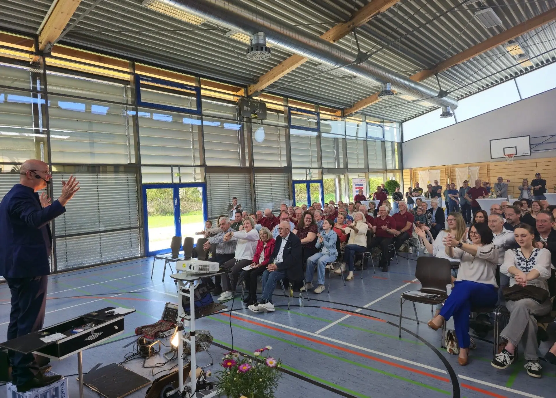 Auch so kann Zusammenhalt aussehen: Beim Programm von Mentalmagier Christian Fontagnier ließen sich die Fichtenauer auf Zahlentricks und Zauberei ein. Belohnt wurden sie mit Staunen und Gelächter.