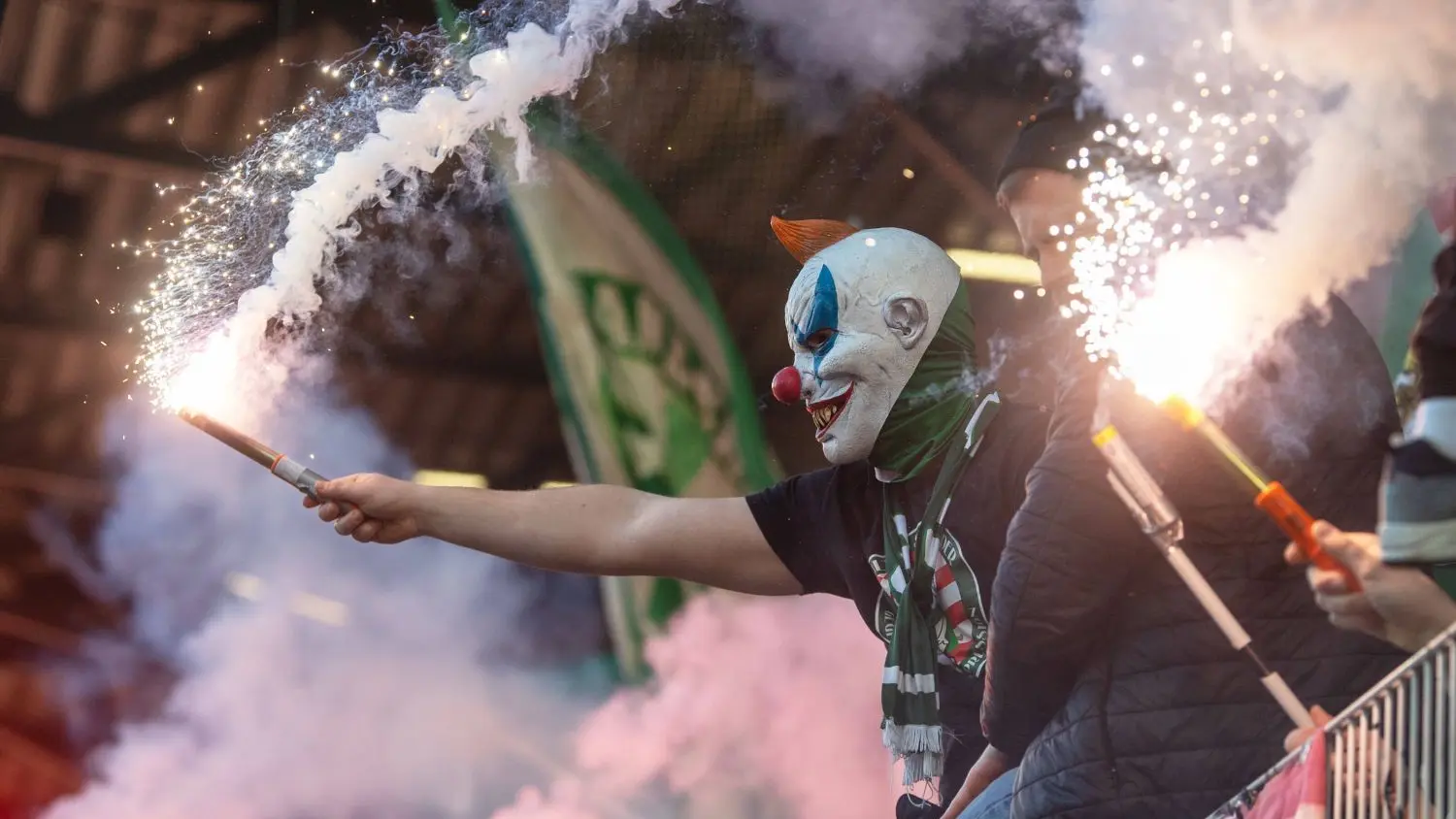 Bengalfeuer beziehungsweise Bengalos kennt man vom Fußball (wie hier beim Spiel zwischen Union Berlin und Werder Bremen im März). Allerdings ist das Abbrennen im Stadion verboten.