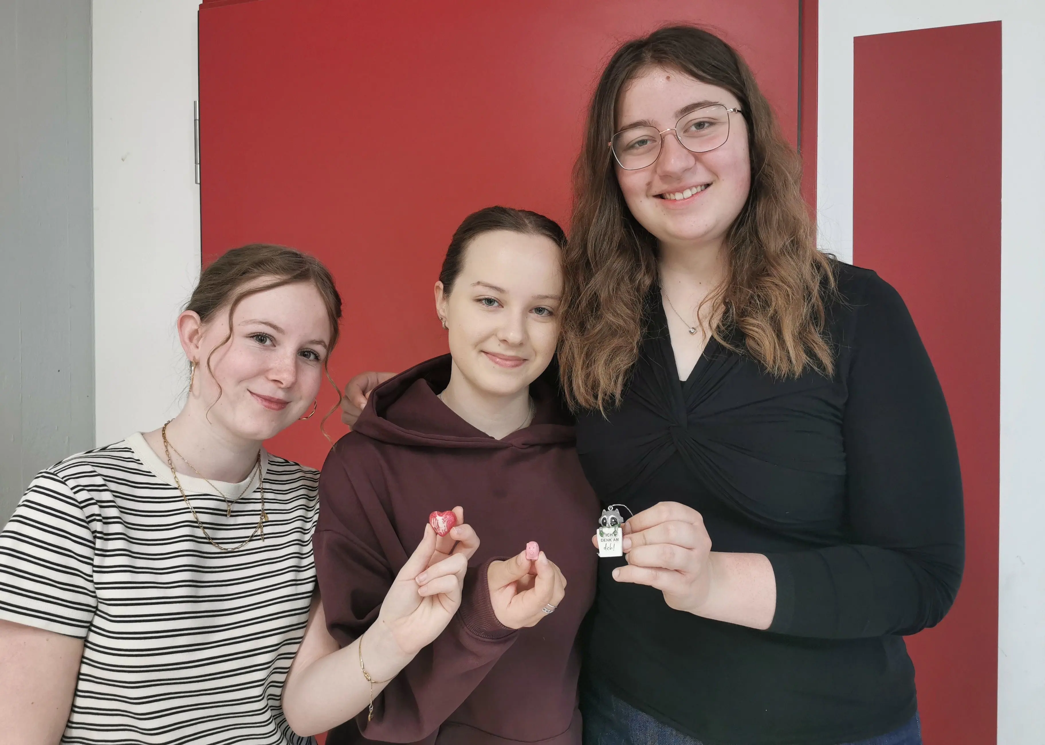 Leni, Lena und Annabell (von links) nahmen zum Deutsch-Abitur kleine Glücksbringer mit.