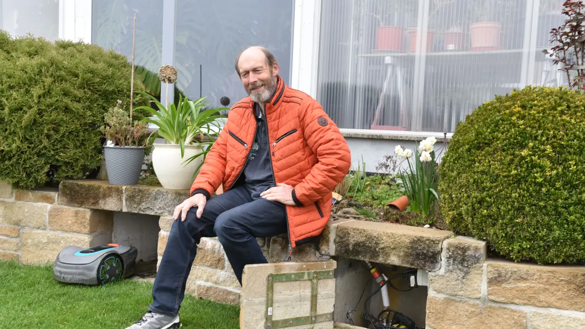 Otto Geprägs mauerte im Garten eine geschwungene Mauer mit Verstecken für Pumpentechnik und den Mähroboter.