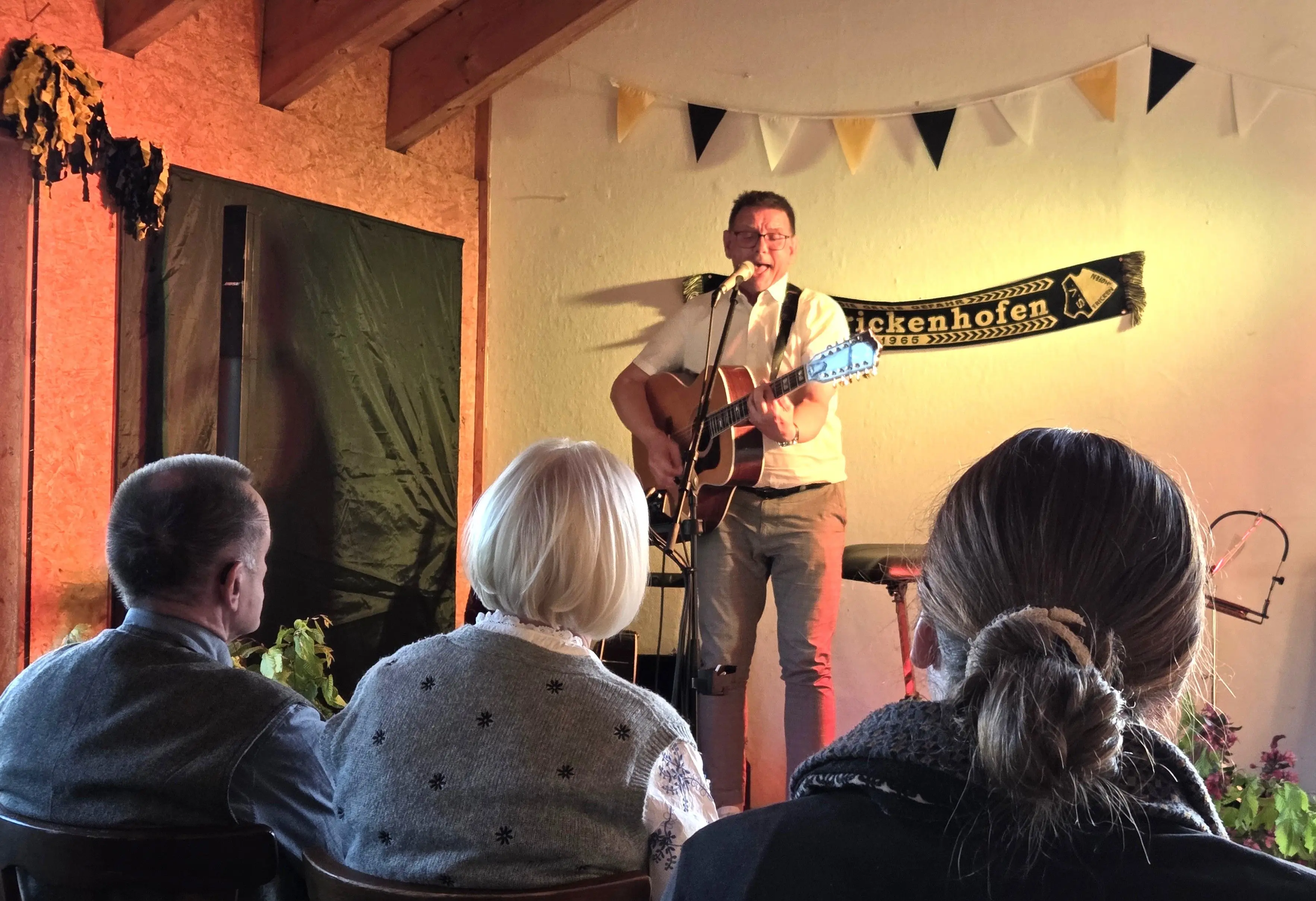 Sport trifft Musik im Vereinsheim. Fichtenbergs Bürgermeister Ralf Glenk musiziert zugunsten der erfolgreichen Volleyball-Frauen des SVF.