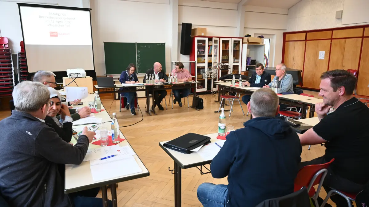 Bürgermeister Stephen Brauer und Dr. Daniel Kuhn sowie Protokollantin Luzia Aßfalg bei der Sitzung des Beziksbeirates in Unterrot.
