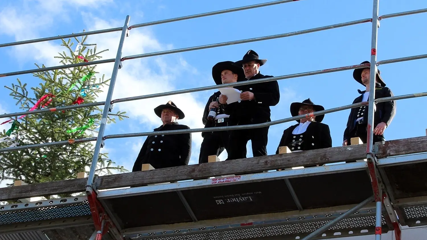 Zimmerermeister Walter Piegsda spricht den obligatorischen Richtspruch für das Pflegeheim. Er wünscht den späteren Bewohnern einen entspannten Lebensabend in dem Gebäude.⇥