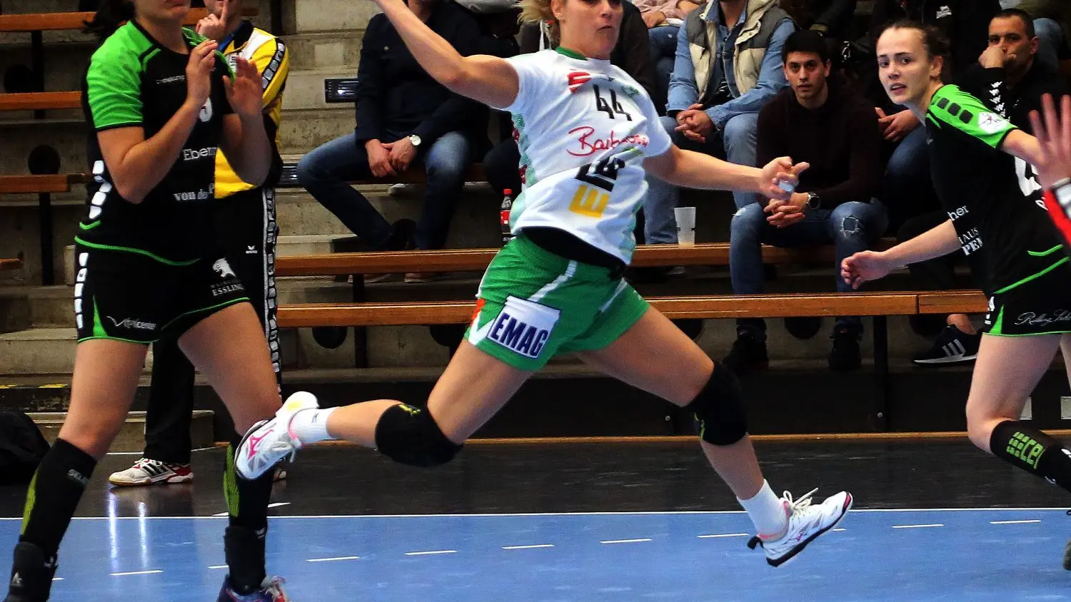 Ana Petrinja steuert hier eines ihrer vier Tore zum heiß ersehnten Heimsieg der Frisch-Auf-Handballerinnen bei.⇥