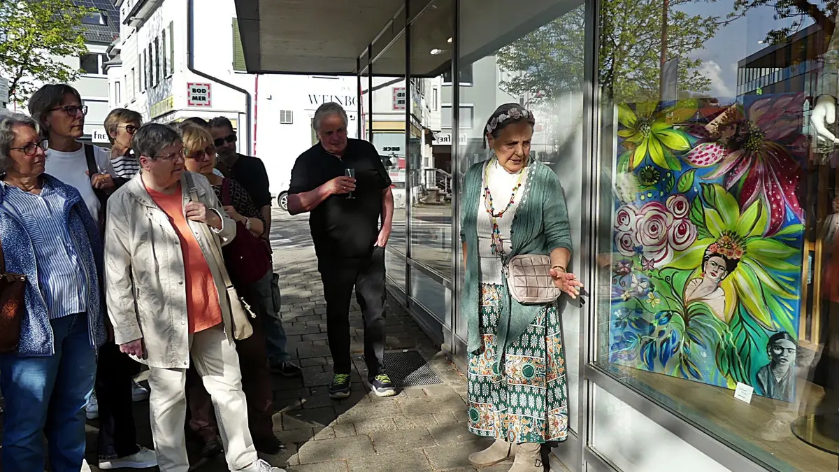 In den Uhinger Modegeschäften Frey lohnt sich derzeit ein Blick in die Schaufenster: Zu sehen sind Bilder von und in der Art von Frida Kahlo.