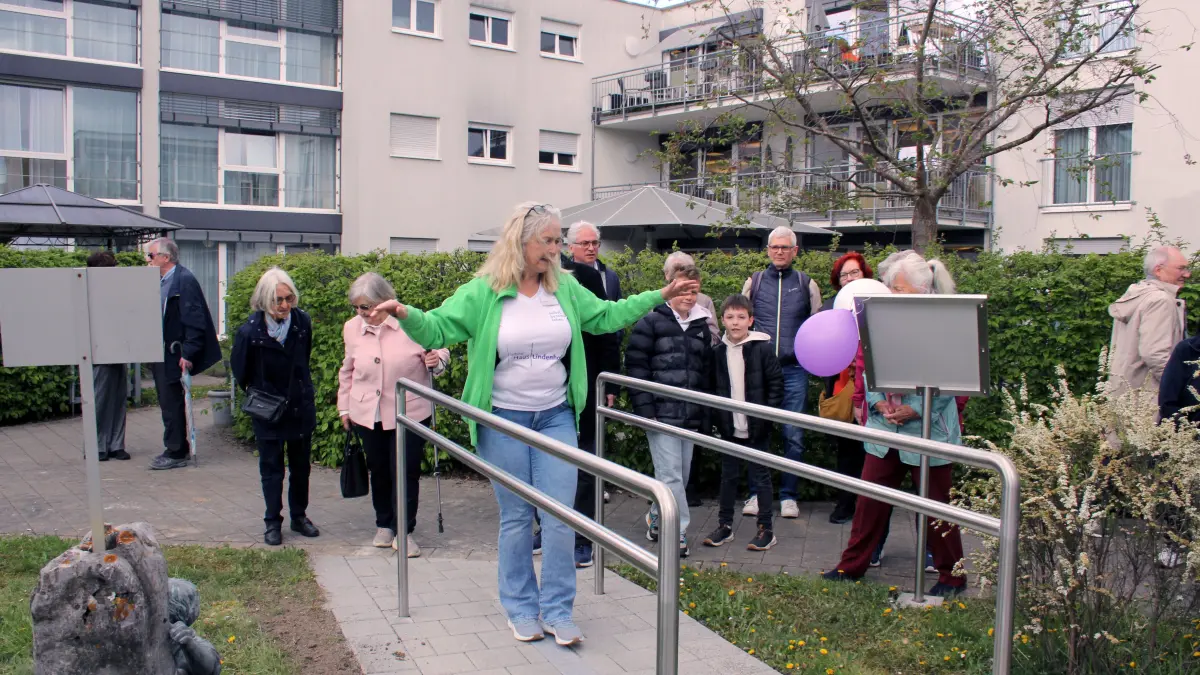 Iris Ruoss- In Salach wurde der Bewegungsparcours „Fünf Esslinger“ im Außenbereich von St. Josef eröffnet.