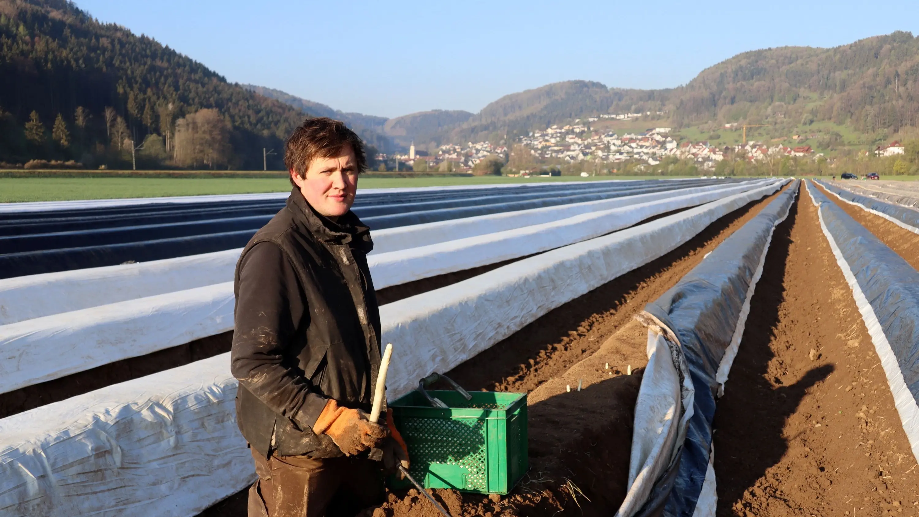 Raphael Kronenbitter begab sich 2017 auf Neuland und baut seither Spargel vor den Toren von Dettingen in Sichtweite des Neckars an. Mit Bedacht wird der Spargel gestochen.