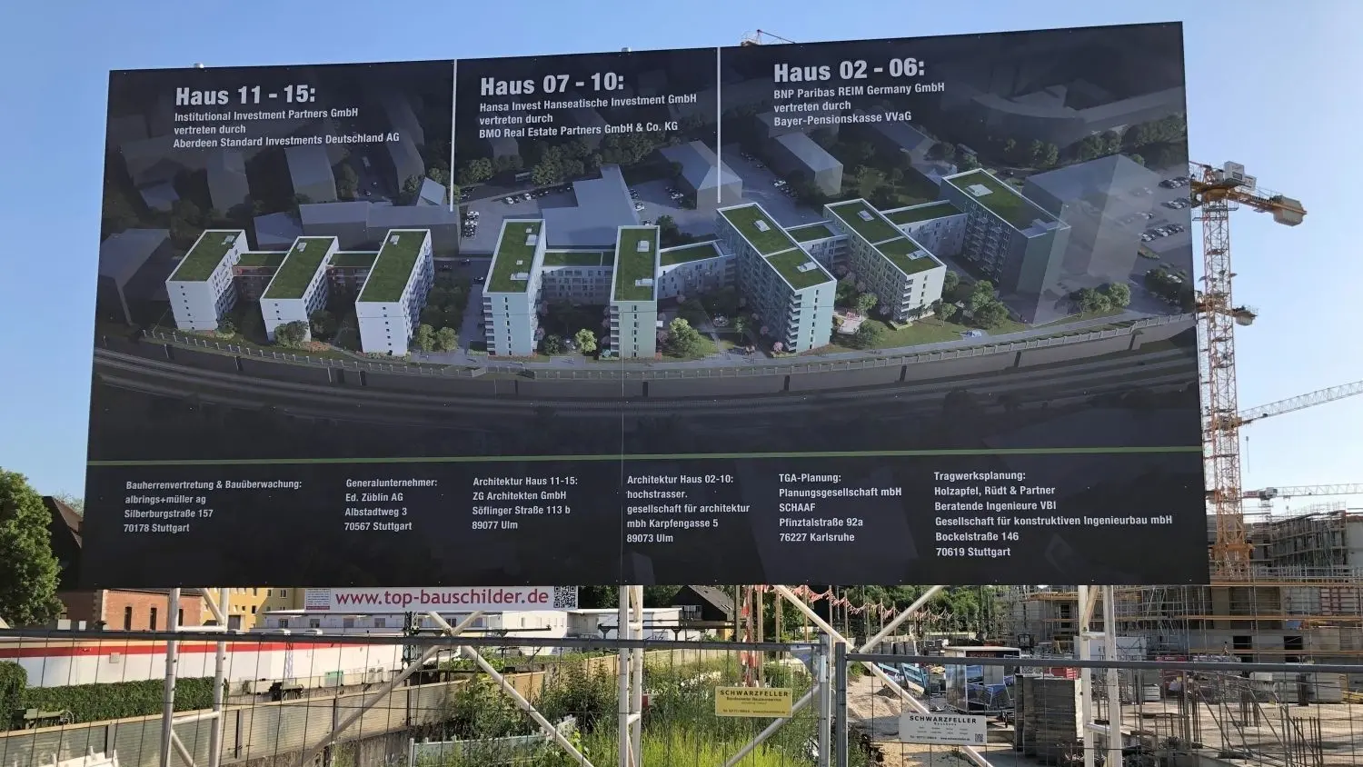 Die Bautafel für den Südstadtturm, ganz rechts ist schemenhaft der Südstadtturm zu erkennen.