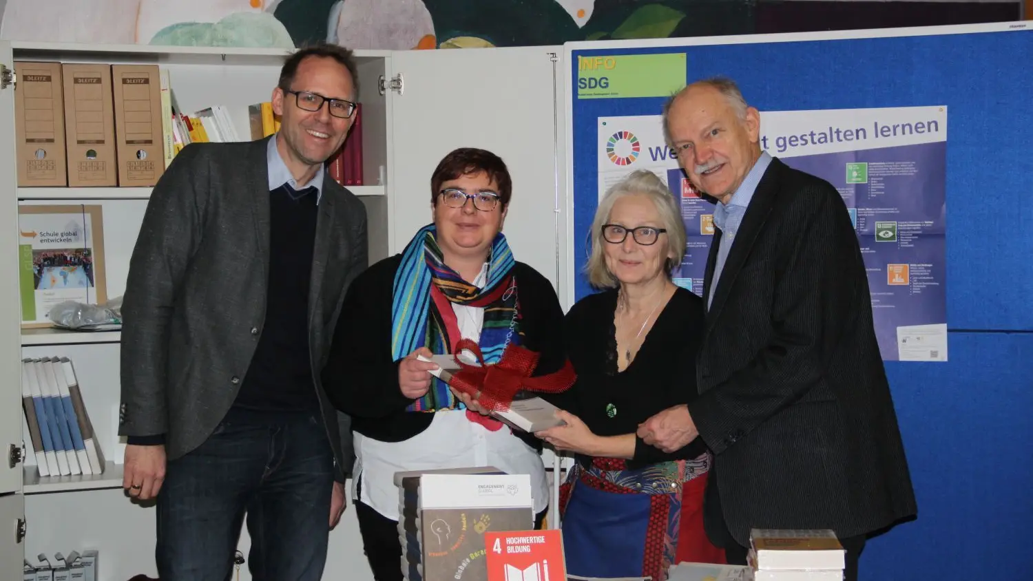 Geschenkübergabe am Seminar mit (von links) Tobias Litz, Direktorin Daniela Stenzel-Karg, EPiZ-Geschäftsführerin Sigrid Schell-Straub sowie Hans-Werner Schwarz.