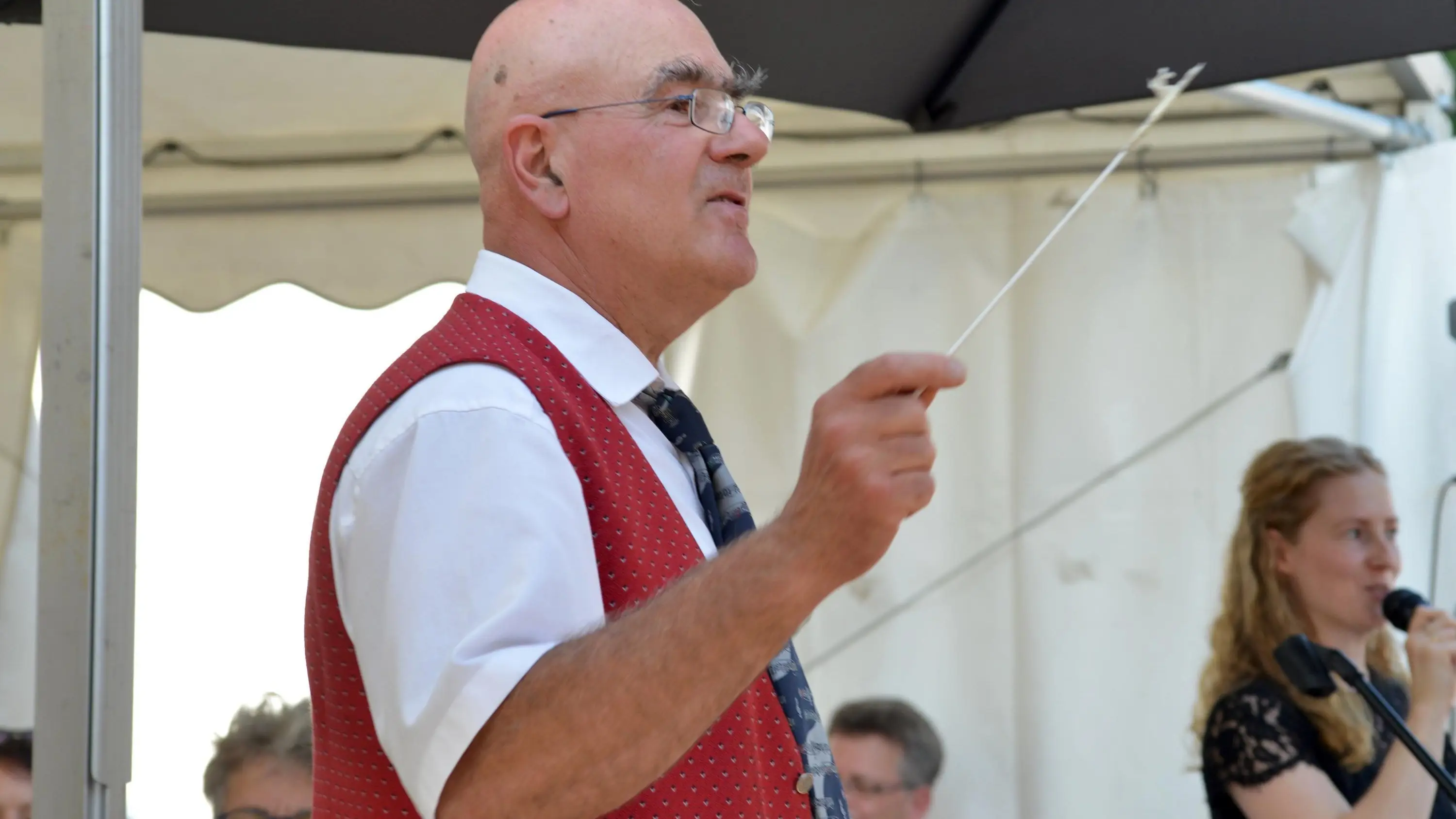 Hartmut Fleck, langjähriger Dirigent des Musikvereins Entringen, verabschiedet sich beim Entringer Kelterfest.