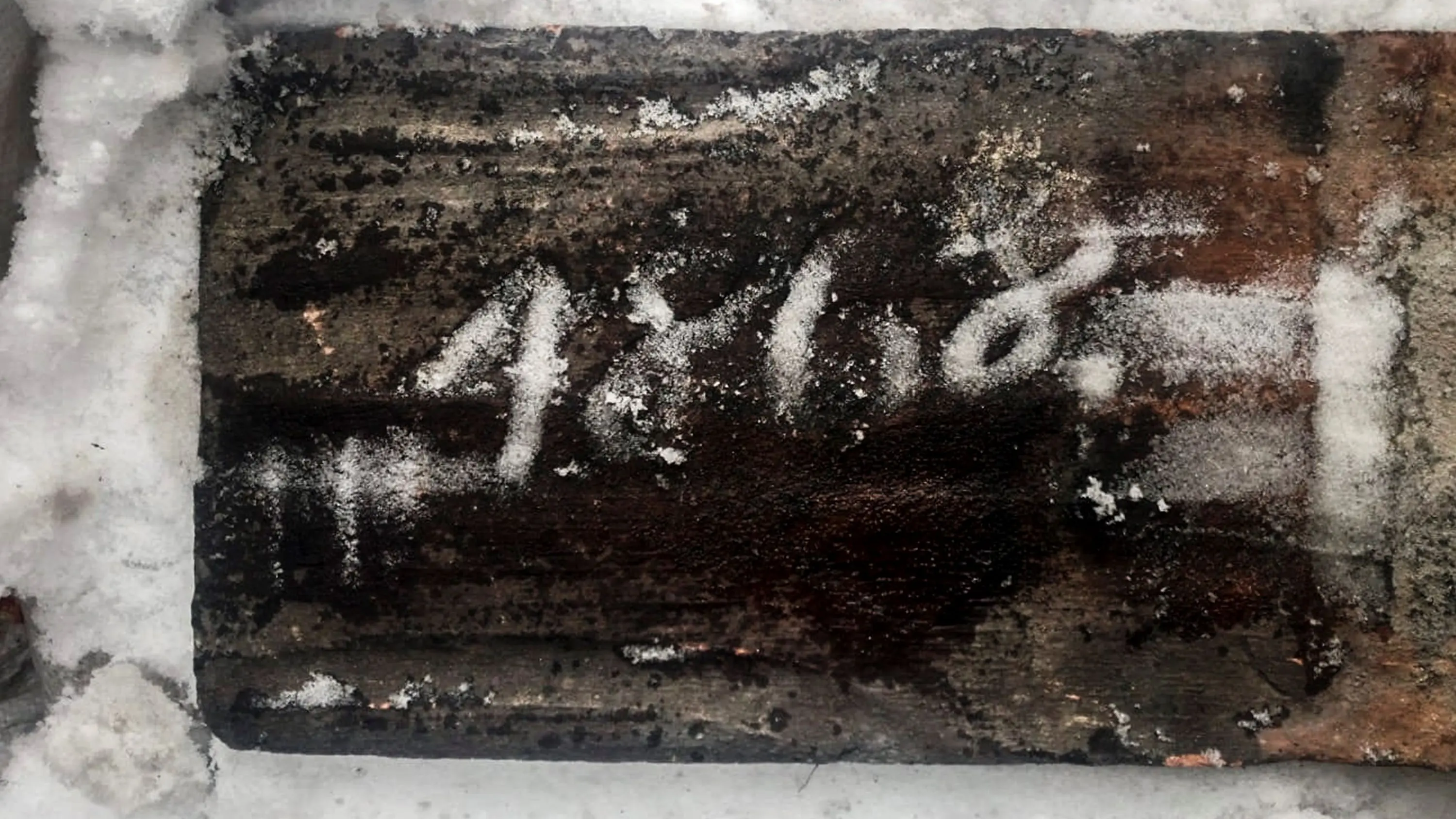 In einen Ziegel ist das Baujahr der Hopfenhalle eingeritzt (und mit Schnee gefüllt besonders gut lesbar): 1868.