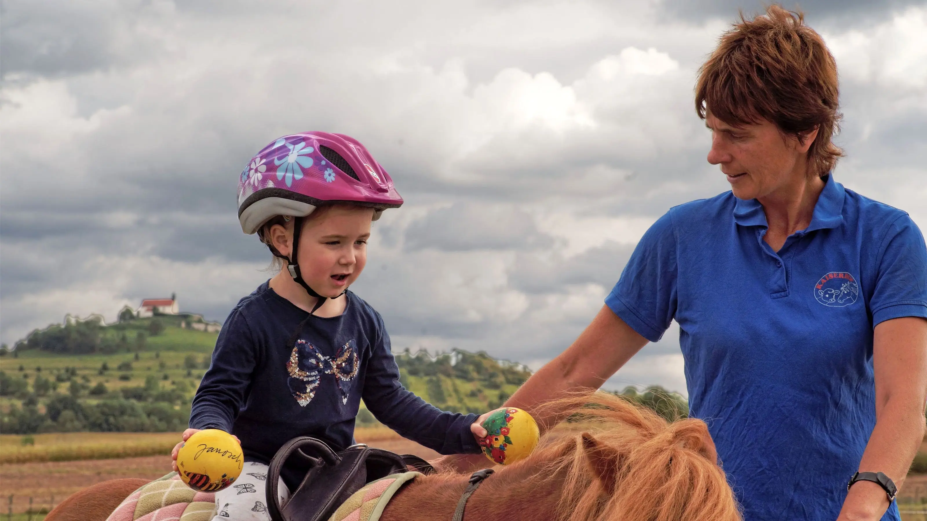 Seit den 60er-Jahren werden Pferde in Deutschland für therapeutische Zwecke eingesetzt – vor allem bei Kindern. Eva Kaiser bietet auf ihrem Hof, neben den Therapiestunden mit Pferden, auch integratives Reiten an und setzt auf Bodenarbeit, Spiele und Musik.
