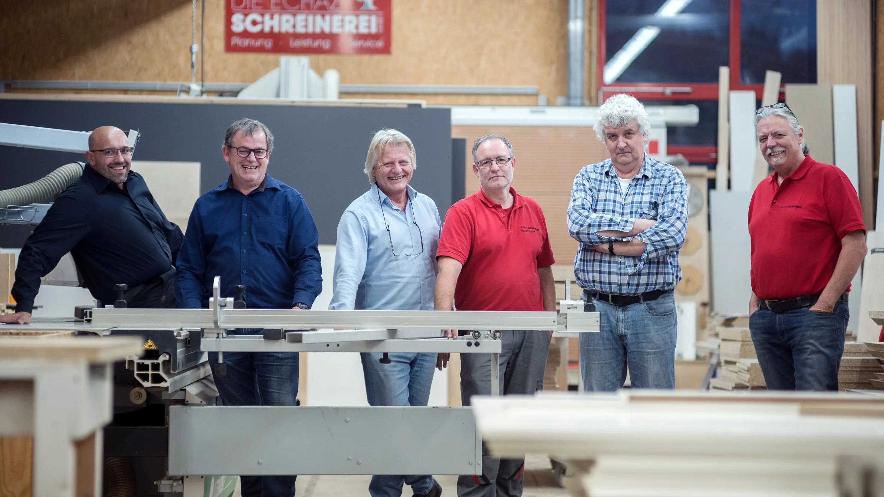 Die sechs Chefs und Gesellschafter der Echaz-Schreinerei: Andrej Bauer, Thomas Kessmeyer, Roland Brixner-Kahlert, Jürgen Braun, Walter Hummel und Ernst-Martin Hauerwas.