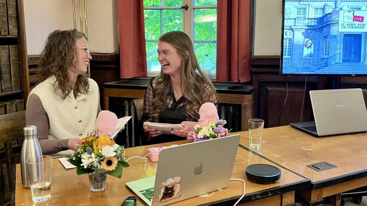 Zwei Freundinnen, Mikros und jahrhundertealte Bücher: Der „Weird Writers"-Podcast zu Gast in der Universitätsbibliothek Tübingen.