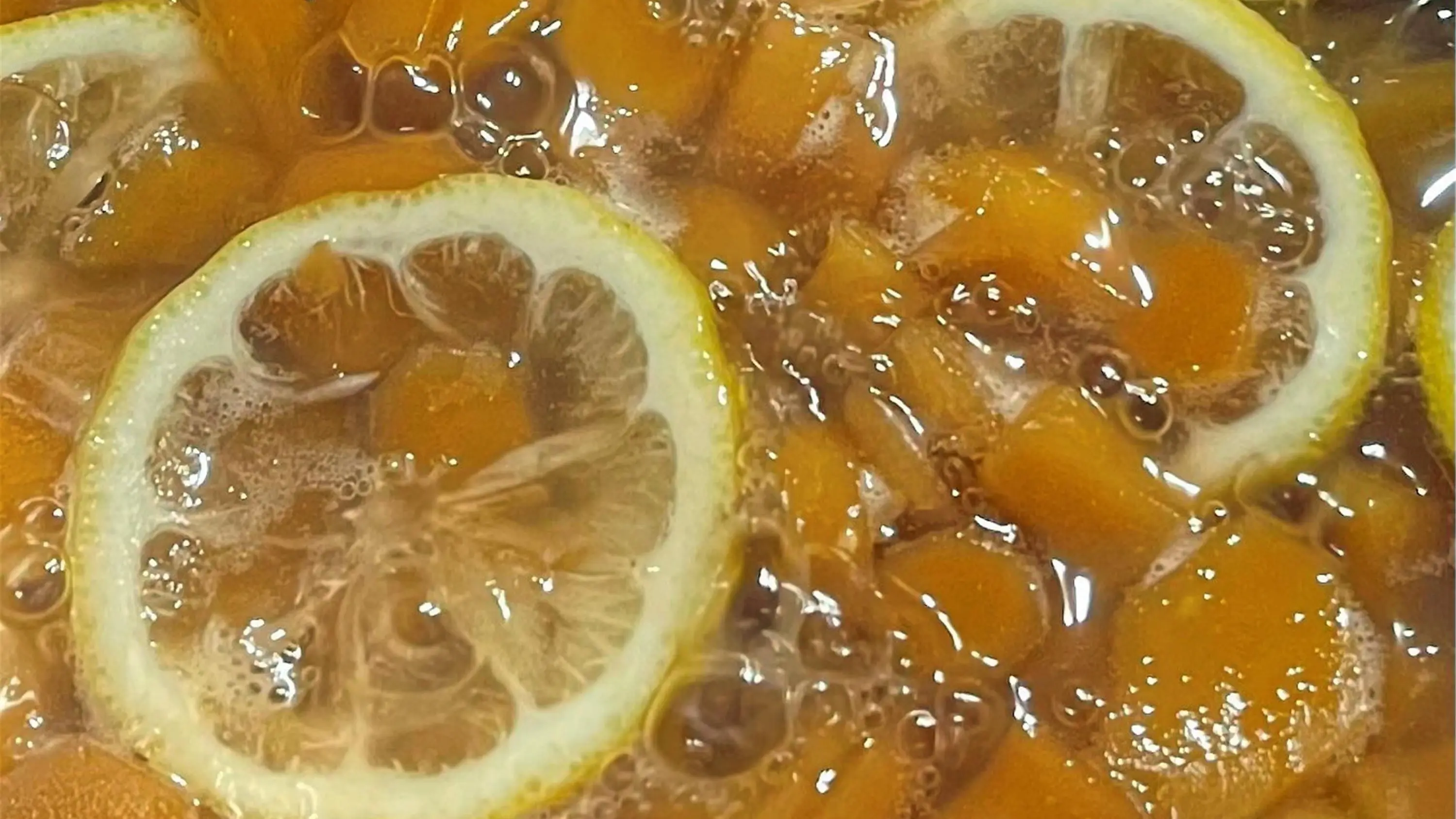 Beim zweiten Aufkochen des Ingwers mit Zucker kommt eine in Scheiben geschnittene Zitrone mit in den Topf.