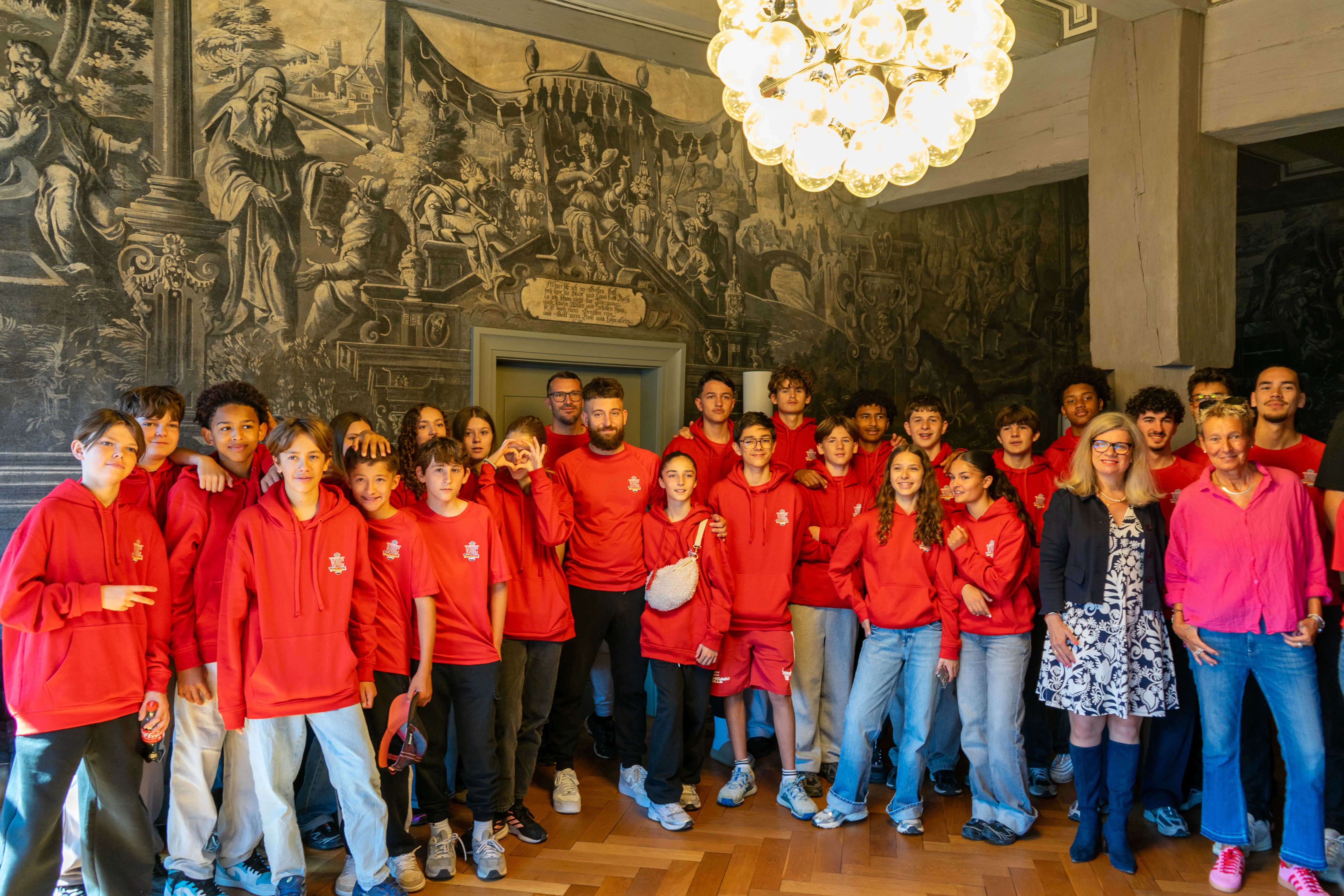 Sozialbürgermeisterin Gundula Schäfer-Vogel (2. v.r.) empfing die 24 Nachwuchs-Basketballspielerinnen und -spieler aus der Tübinger Partnerstadt Aix-en-Provence im Rathaus. Michaela Steck (1.v.r.) vom SV 03 Tübingen organisiert den Austausch seit einigen Jahren.