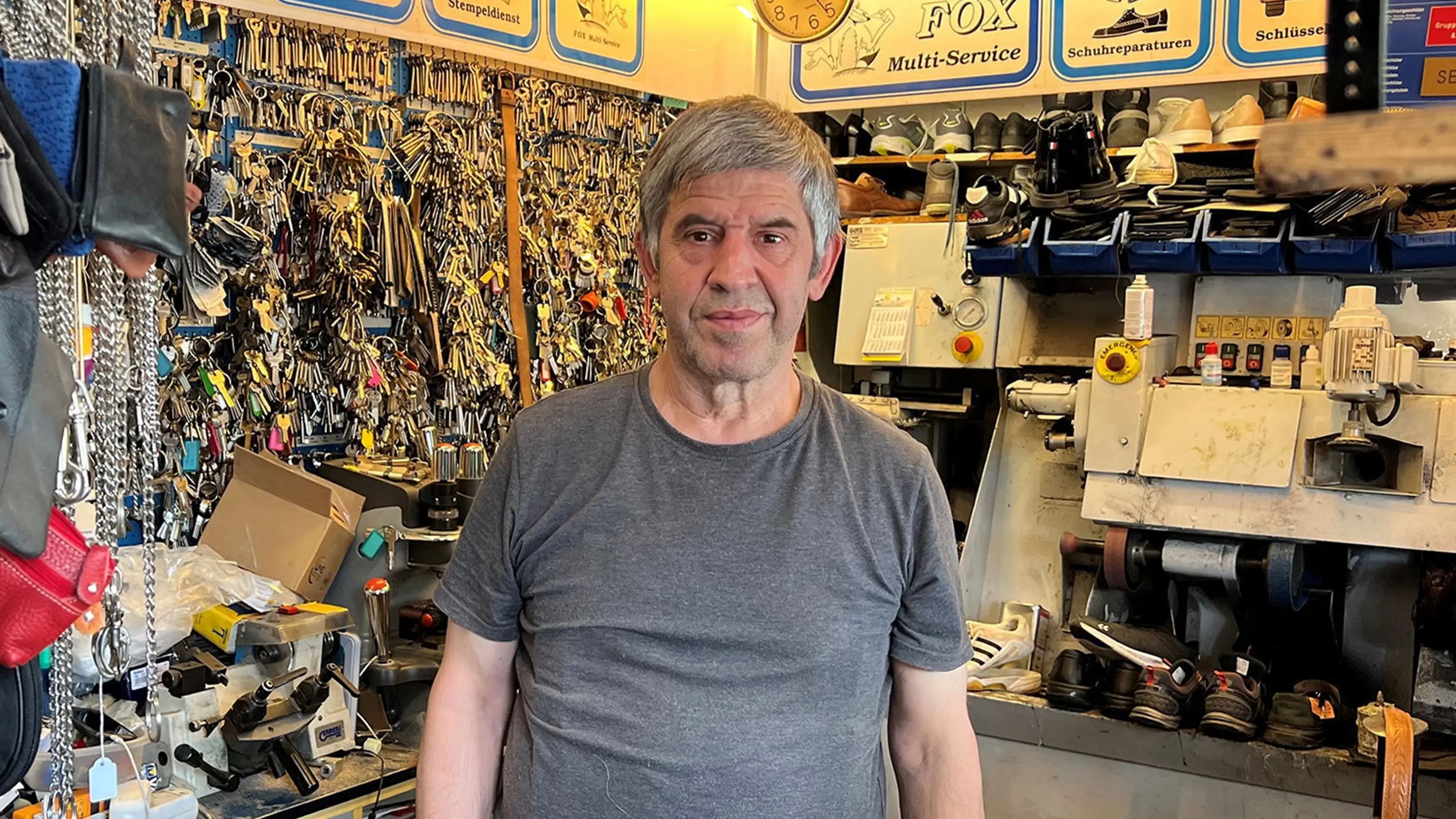 Halit Kaya kämpft mit seinem Schlüsseldienst und Schuhreparatur-Laden vor dem schließenden Real-Markt in Weilheim ums Überleben.