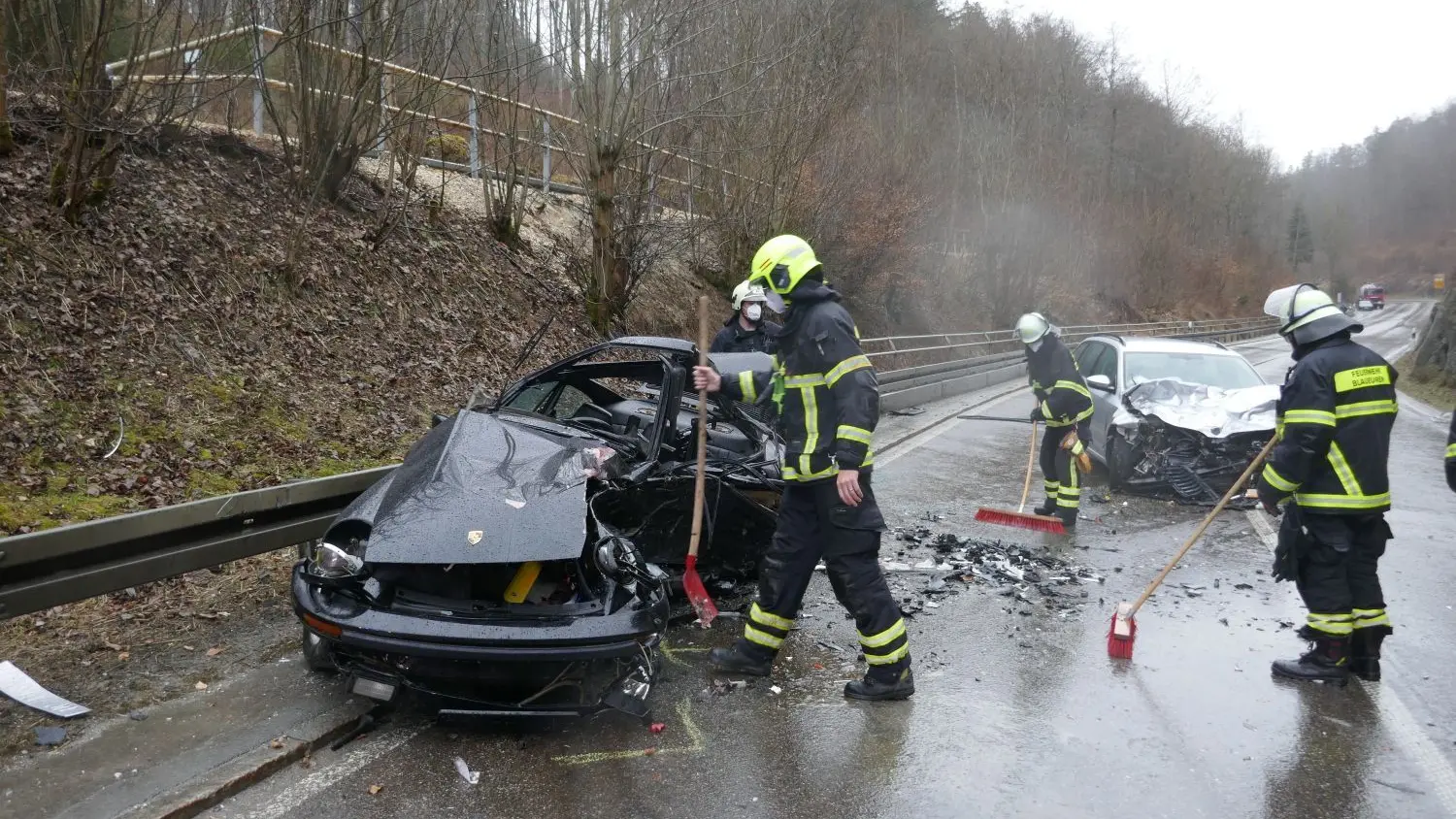 Joachim StriebelNach ersten Erkenntnissen befuhr ein 56–jähriger Fahrer des älteren Porsche aus Richtung Blaubeuren kommend bergauf die Blaubeurer Steige Der Porsche streife zunächst den Pkw einer 40 Jahre alten Frau, die ihm entgegenkam. Danach prallte er mit der Fahrerseite gegen den Skoda eines 59–Jährigen, der ihm ebenfalls entgegenkam. Die Blaubeurer Feuerwehr, die um 14.46 Uhr alarmiert wurde, befreite den in seinem völlig demolierten Fahrzeug eingeklemmten Porsche–Fahrer. Wie Kommandant Uwe Ziegler berichtet, mussten hydraulische Werkzeuge wie Schere, Spreizer und Stempel eingesetzt werden. Trotz Bemühungen des Notarztes verstarb der Porsche–Fahrer noch an der Unfallstelle. Der schwer verletzte Fahrer des Skoda wurde ins Krankenhaus gebracht. Die Bundesstraße 28 war im Bereich zwischen Blaubeuren und Seißen voll gesperrt. Die Feuerwehr, die mit vier Fahrzeugen und 15 Helfern ausgerückt war, musste die mit Öl verschmutzte Fahrbahn reinigen.
