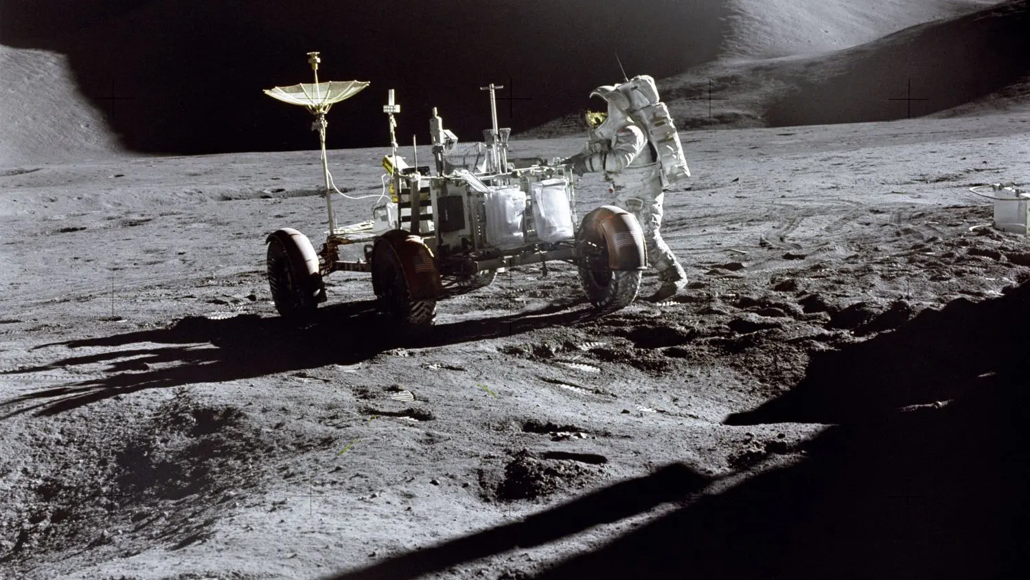 So sah ein Mondfahrzeug 1971 aus: US-Astronaut James B. Irwin neben dem "Mondauto" während der Apollo 15 Mission (26.07. bis 07.08.1971). Jetzt hat die Nasa die Entwicklung von neuen Mondfahrzeugen in Auftrag gegeben.