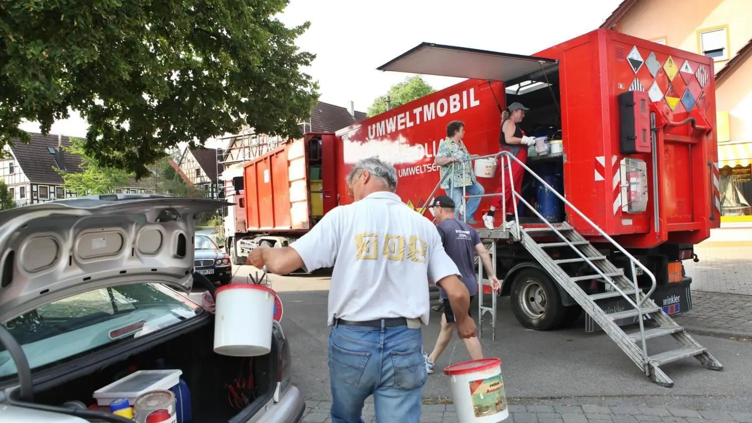 Lacke, Farben und andere Stoffe befinden sich im Kofferraum dieses Autos. Beim Umweltmobil können sie kostenlos abgegeben werden. Das Archivbild zeigt ein Sammelfahrzeug der Firma Veolia am Standort Vellberg-Großaltdorf.