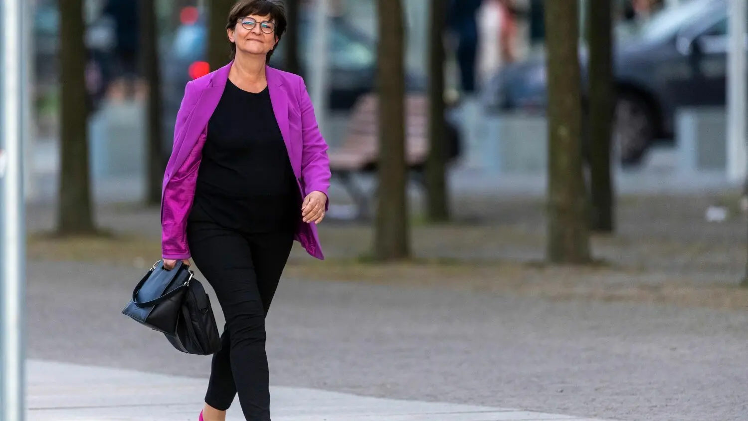 Saskia Esken, SPD-Bundesvorsitzende, geht forschen Schritts durch Berlin. ⇥
