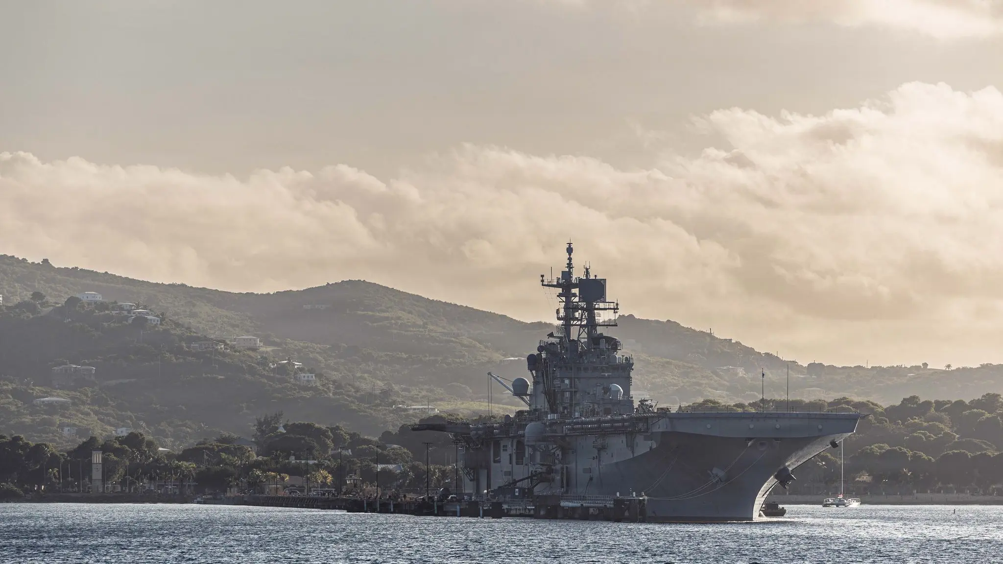 Auf diesem von der U.S. Navy zur Verfügung gestellten Bild ist das amphibische Angriffsschiff der Wasp-Klasse USS Iwo Jima (LHD 7) am Pier in St. Croix, U.S. Virgin Islands, zu sehen. (zu dpa: «Wie der US-Einsatz in Venezuela abgelaufen sein soll»)