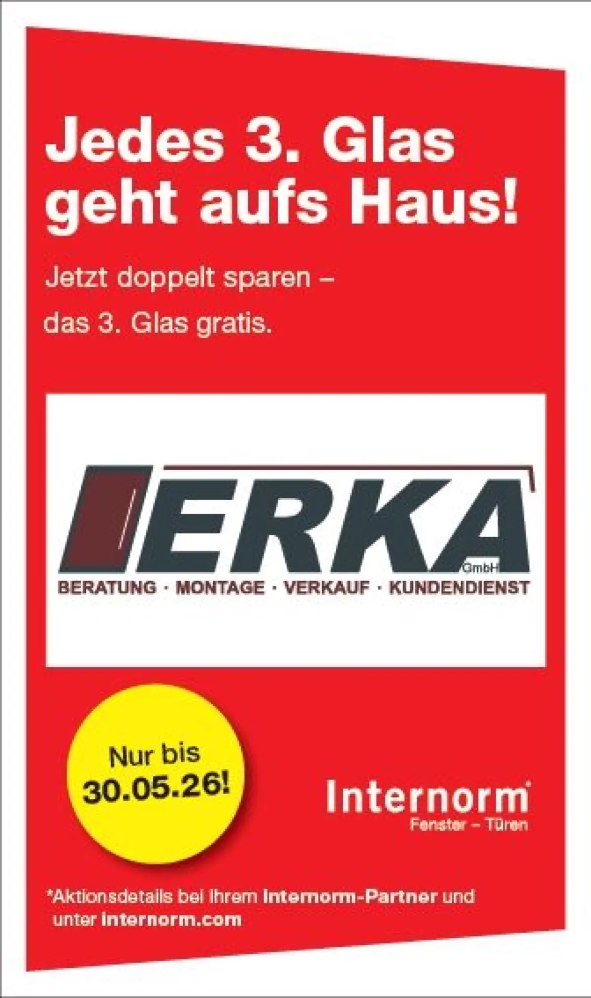 „Richtig interessant ist das derzeitige Frühlingsangebot von unserem Fensterhersteller Internorm“, sagt Geschäftsführer und Fachberater Joachim Lutteri. „Wer in dreifach verglaste Fenster investiert, profitiert eindeutig von einer deutlich besseren Energieeffizienz. Bis zu dreißig Prozent Energie lassen sich damit einsparen. Mit der Frühlingsaktion von Internorm lässt es sich sogar doppelt sparen, denn: jede dritte Scheibe einer dreifach-Isolierverglasung geht auf’s Haus. Das Angebot ist befristet bis einschließlich 31.05.2026“, so Lutteri.