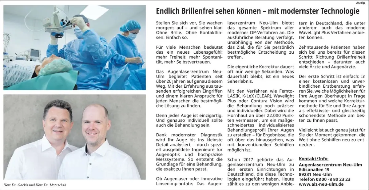 Abgesehen also vom Komfort und Freiheit, die ein Leben ohne Brille bietet: Auf langfristige Sicht lohnt es sich, die Kosten für eine Augenlaser-OP auf sich zu nehmen. Je nachdem, für welche Lasermethode man sich letztlich entscheidet, nach etwa zehn Jahren kann einiges an Geld im Vergleich zu den Kosten für hochwertige Kontaktlinsen oder Brillen gespart werden. ⇥ab