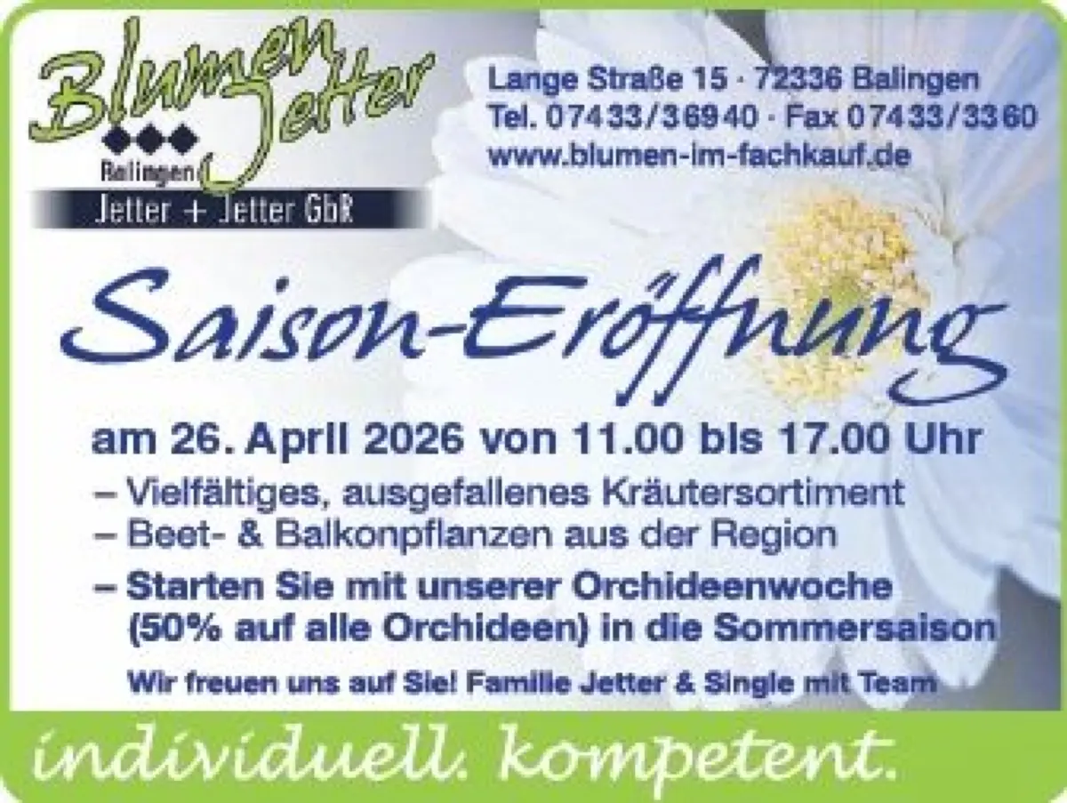 Saisoneröffn. Blumen Jetter: Lass Blumen sprechen