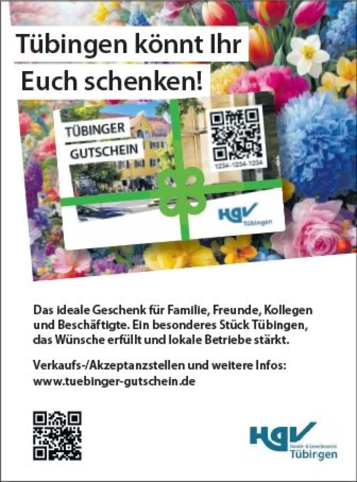 Stadt TübingenAuch in diesem Jahr lädt der Tübinger Regionalmarkt im April und Oktober wieder zum Entdecken, Genießen und Begegnen ein. Der traditionsreiche Markt ist längst zu einem festen Treffpunkt für regionale Produzentinnen und Produzenten, Handwerkerinnen und Handwerker sowie Manufakturen geworden und steht wie eh und je für Qualität, Regionalität und persönliche Begegnungen in der Tübinger Altstadt.
