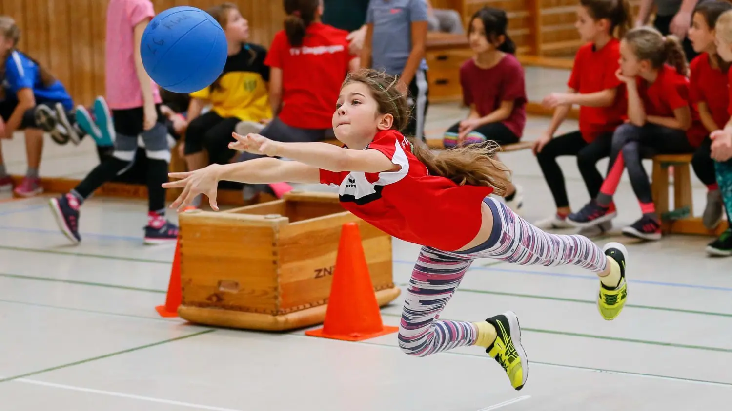 Beim Leichtathletik-Mini-Spielfest in der Kuchener Ankenhalle holt der TV Deggingen die meisten Siege.