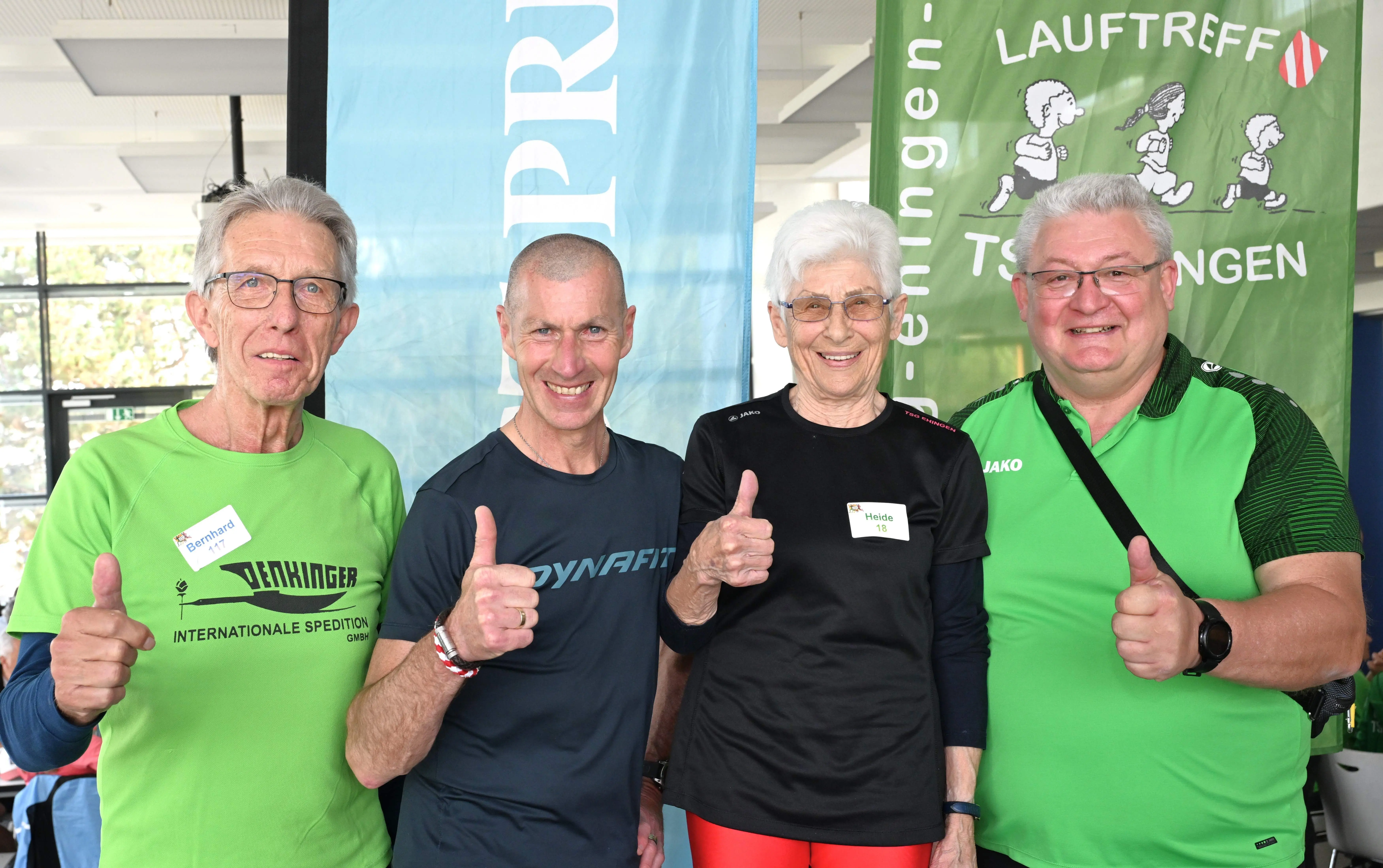 Peter Frielitz (rechts) mit Heide Kleiner (87), Weltmeister Michael Epp und Bernhard Pohlkamp, der im Mai 80 wird.