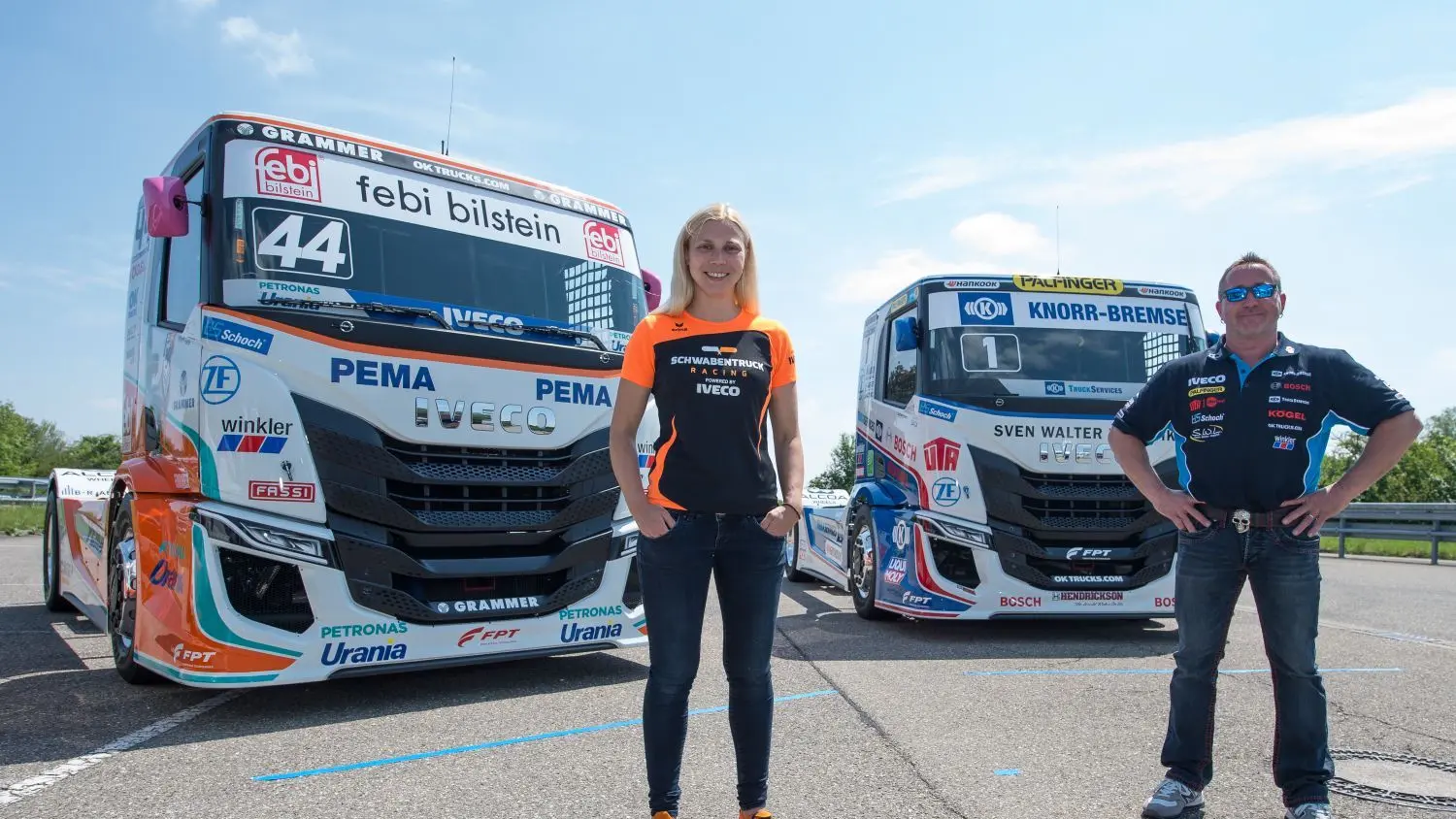 Erfolgsteam: Stephanie Halm und Jochen Hahn vor ihren Iveco-Trucks.
