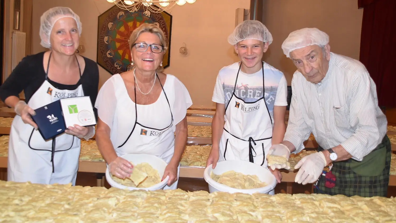 Das traditionelle Maultaschenessen der Metzinger Kolpingsfamilie ist ein Projekt, das Generationen verbindet: Gabriele Kleiner, Ulrike Schnepf, Ansgar Senz und Alexander Landsmann (von links).