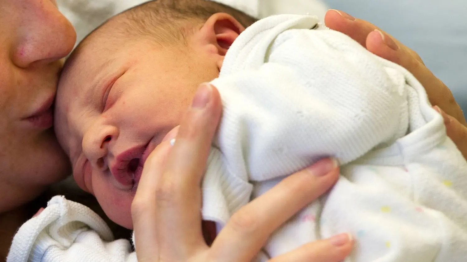 Eine Mutter küsst im Krankenhaus ihr Neugeborenes. ⇥